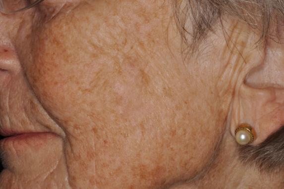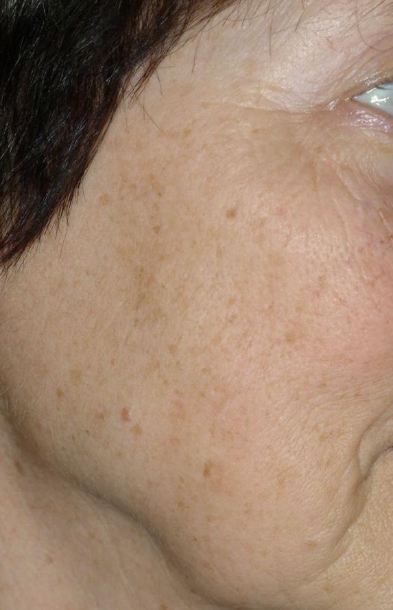 Sind Altersflecke flach und nicht tastbar, so lassen sie sich am besten mit dem Laser entfernen. Dunkle, gut abgrenzbare Flecken lassen sich dabei recht gut mit dem Q-switched Nd:YAG-Laser, dem Alexandritlaser oder auch mit dem laserähnlichen System IPL 570 nm behandeln. Für einen befriedigenden Erfolg reichen zumeist 2 – 3 Sitzungen. Sind die Flecken heller und weniger gut abgegrenzt, sind gelegentlich 4 oder 5 Behandlungen mit dem IPL 570 nm-System notwendig.